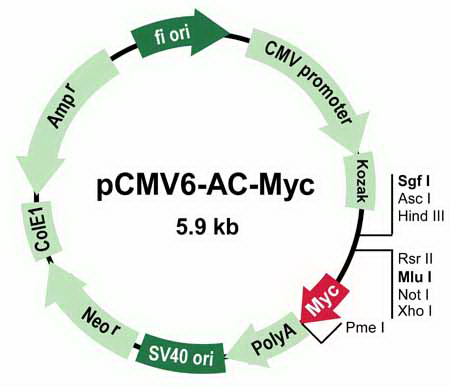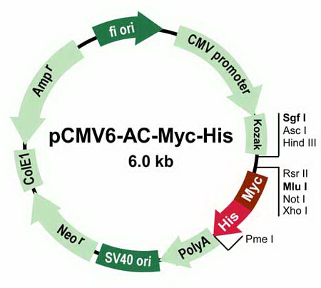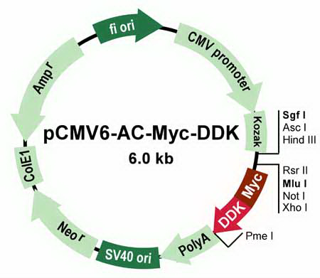 pCMV6-Entry, mammalian vector with C-terminal Myc- DDK Tag, 10ug SKU: PS100001