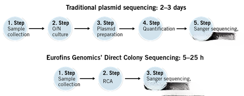 Fast Receive your sequencing results one day earlier for your plasmid clones as DNA preparation is not needed. Results are available the same day as samples are received